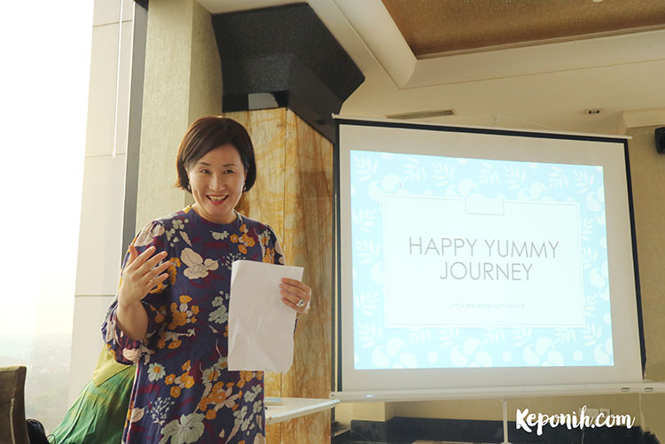 Acara launching buku Happy Yummy Journey ini tak terasa mengantarkan kami pada senja yang indah di 18th Resto & Lounge Trans Luxury Hotel, dikatakan oleh asistennya bahwa kebiasaan orang Korea adalah make a wish saat berada atau melihat view yang indah. Saya sering begitu, menjejak tempat yang mempunyai keindahan seringkali membuat batin mengadu meminta sesuatu, tapi kali ini kami lebih indah dari biasanya. Karena saya bersama dengan teman -teman dan juga Prof. Eje Kim, seorang wanita Korea Selatan yang menemukan kebahagiaan dengan caranya yang paling unik dan menyenangkan, yang mencintai Indonesia karena katanya di sini benar adanya kelengkapan ” Eat, Pray, Love ” secara gamblang dan luas. Yang sedang bersiap menulis buku keduanya tentang Minangkabau dan Bandung.