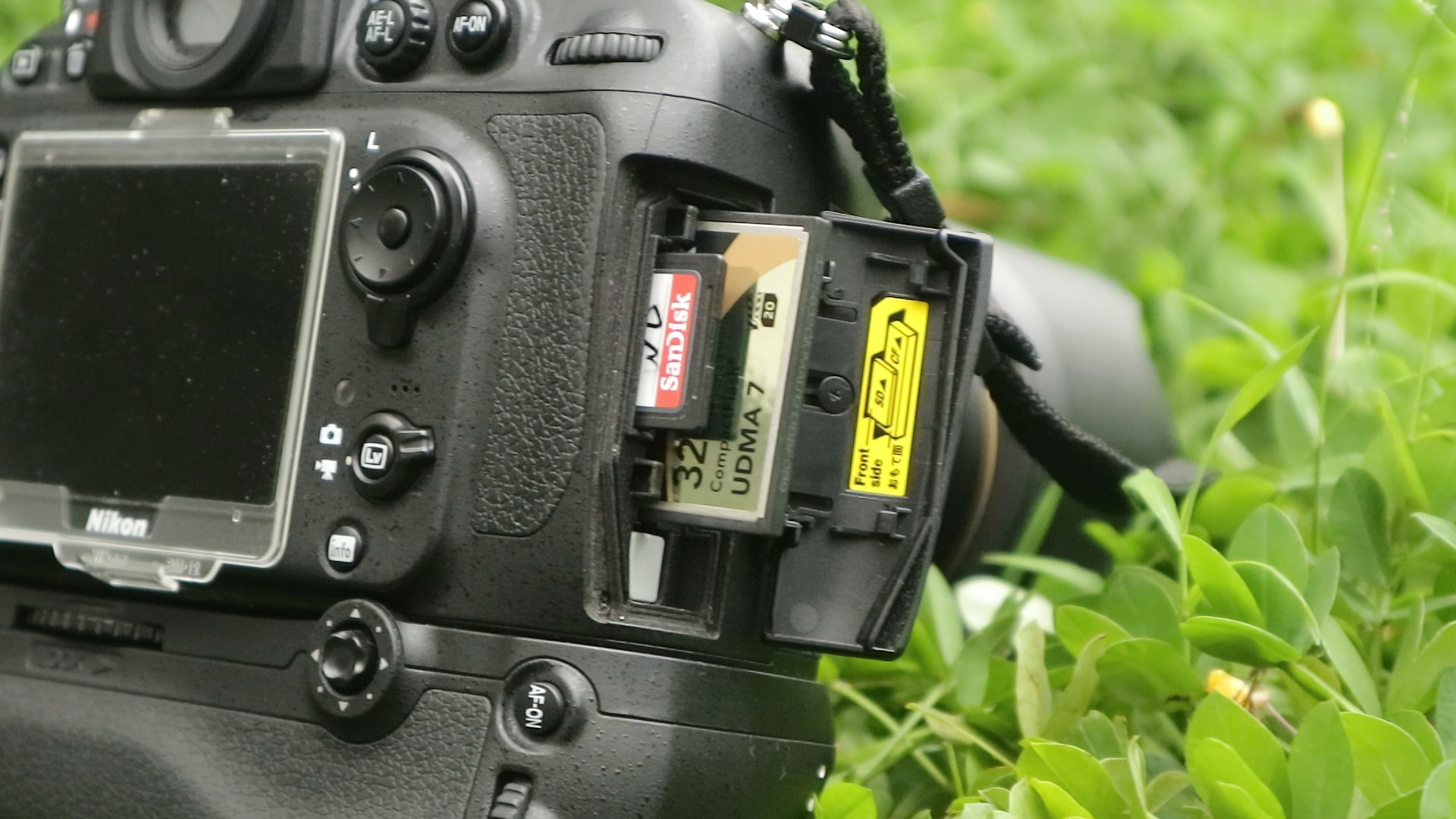 Nikon D800 memiliki 2 slot memory card, CF dan SD Card yang dapat di konfigurasi dalam berbagai mode seperti mode auto backup dimana file yang sama ditulis ke dua memori card sekaligus, lalu mode ketika satu kartu penuh maka akan otomatis menyimpan ke kartu lainnya, dan mode RAW+JPEG dimana file raw disimpan di satu kartu, sedangankan file JPEG disimpan ke kartu yang lain.