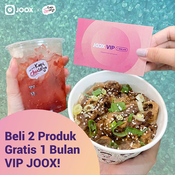Buat pelanggan Kopi Chuseyo, ada yang baru di bulan April ini. Sesuai dengan tema Kopi Chuseyo yang memadukan kegemaran minum kopi dengan musik K-Pop, Kopi Chuseyo berkolaborasi dengan social entertainment platform JOOX menghadirkan promo spesial VIP Product Bundling. mulai dari 12 April 2021, setiap pembelian dua produk Kopi Chuseyo (minuman+makanan), pelanggan bisa mendapatkan VIP subscription JOOX gratis selama satu bulan.