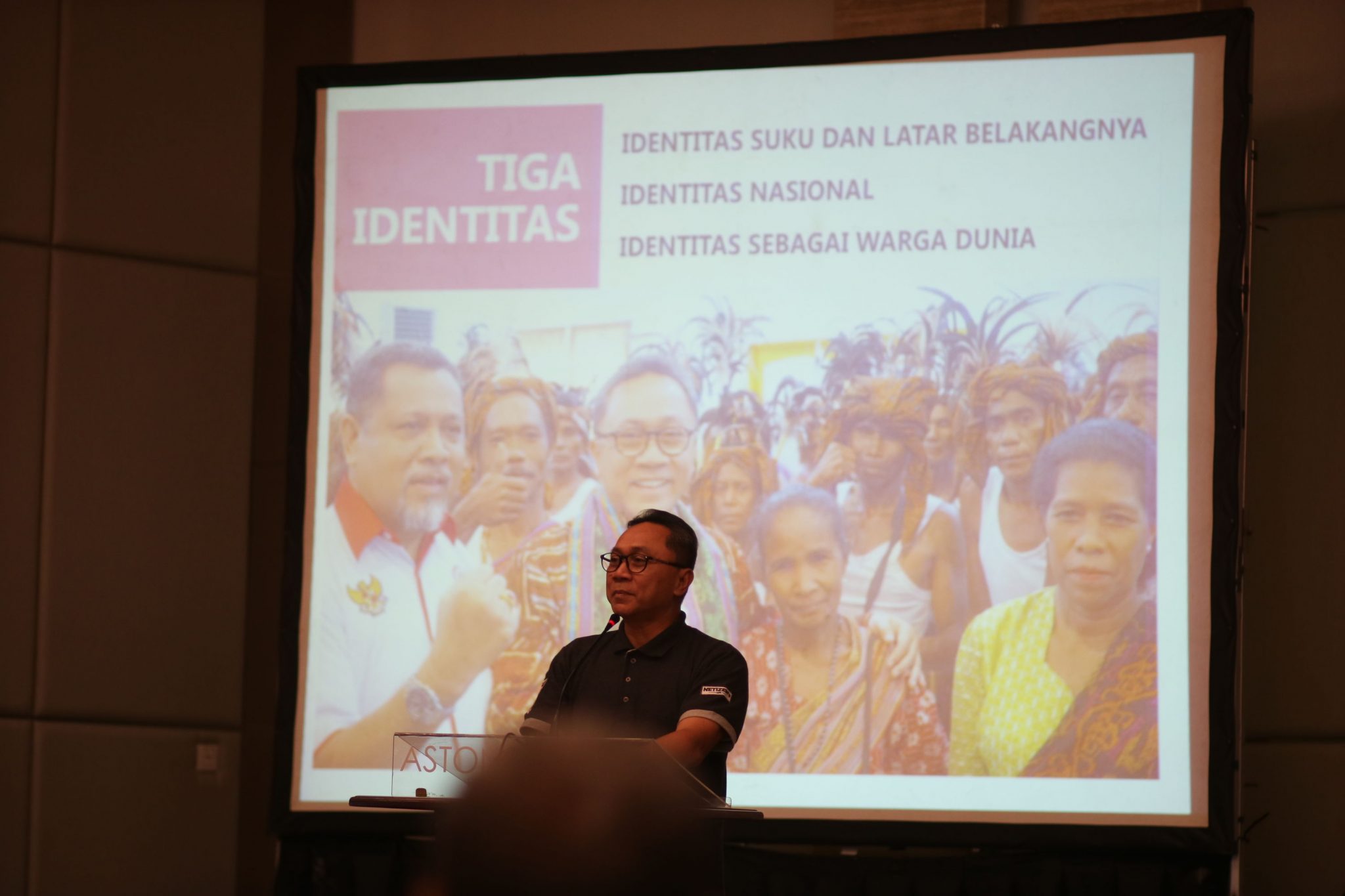 Pak Zulkifli Hasan juga menyampaikan bahwa sebagai individu kita memiliki 3 identitas. Identitas suku dan latar belakangnya, Identitas Nasional, dan Identitas sebagai warga dunia.