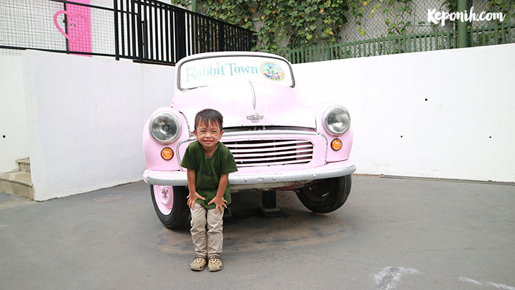 Meluncur ke kawasan Ciumbuleuit dan menemukan tempat ini, Rabbit Town namanya. Menemukannya juga tak sulit, ada patung – patung kelinci nangkring di depan dan kita tinggal masuk aja, area parkirannya cukup luas walau jalan menuju ke sini lumayan sempit. Ini kali pertama kami ke sini dalam rangka mengajak io jalan – jalan.