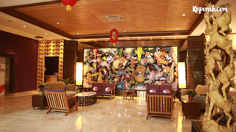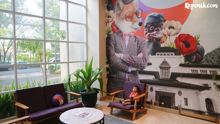 Artistik namun juga modern dan kece , itulah kesan pertama begitu memasuki loby hotel. Meja resepsionis yang terletak dibagian sebelah kiri membuat mata terpana keseluruhan pada suasana hotel begitu datang. Terdapat kursi – kursi dan meja yang disediakan untuk duduk – duduk dan menunggu, persis di depan meja resepsionis pun ada dan jelas sekali gambar fox yang dicetak raksasa bergaya di sana, gatel pengen foto jadinya. Yaudah narsis aja di sini, emang mau melewatkan berfoto di sini ?
