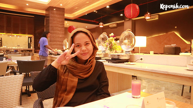 Saya harus bilang ini breakfast di hotel yang dengan pelayanan dan menu makanan yang paling memuaskan dan berkesan. Ada banyak banget menu nya, bahkan gorengan dan roti – roti ala french. Dari segi makanan berat pun saya acungin jempol karena ada corner khusus yang menyediakan masakan serba balado khas padang. Saya tak berani mencoba karena semenjak hamil perut mendadak tak bersahabat dengan makanan – makanan pedas. Tapi kata papi rasanya enak.